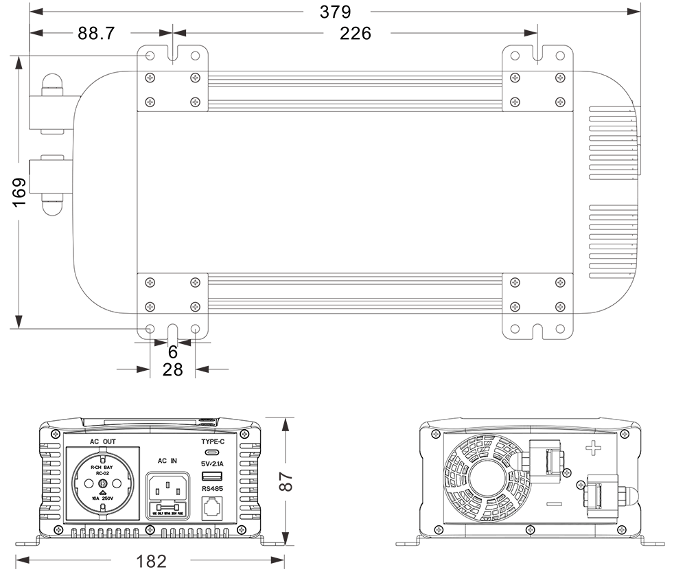 ● Întrerupător ATS și AC încorporat