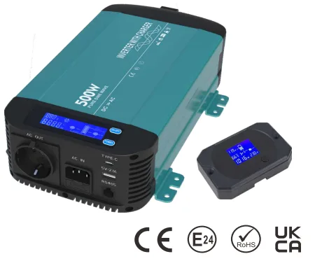 • Invertor cu undă sinusoidală pură de 500 W cu încărcător HK500PCInvertor cu undă sinusoidală pură de 500 W cu încărcător HK500PC